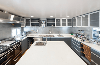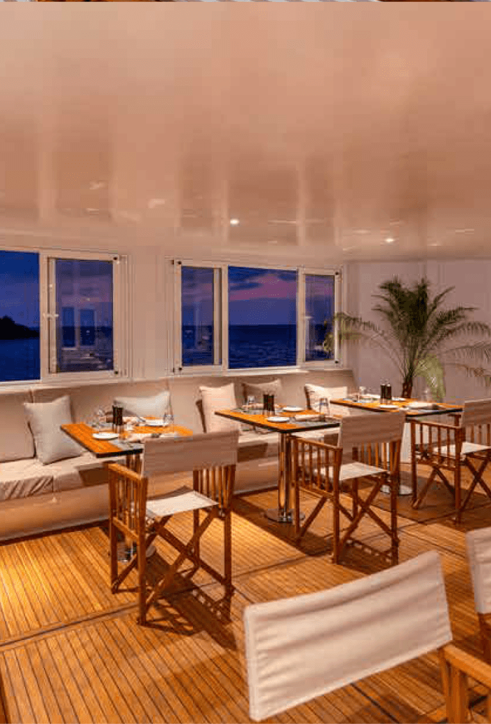 Our vessel pampers you with exquisitely designed rooms and state-of-the-art facilities, promising a peaceful haven amidst the sea’s embrace. Experience culinary delight in our onboard kitchen, where every meal comes with a stunning ocean view.